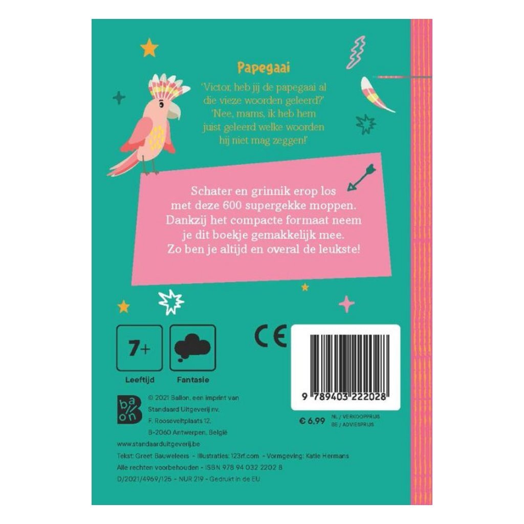 ‘Victor, heb jij de papegaai al die vieze woorden geleerd?’ ‘Nee, mams, ik heb hem juist geleerd welke woorden hij niet mag zeggen!’ Schater en grinnik erop los met deze 600 supergrappige moppen. Dankzij het compacte formaat neem je dit boekje gemakkelijk mee. Zo ben je altijd en overal de grappigste.